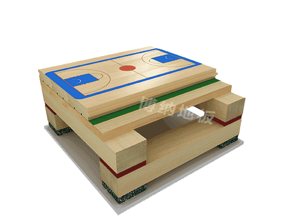 推薦理由:雙層龍骨斜鋪結(jié)構(gòu)采用LVL或?qū)嵞君埞钦w懸浮式安裝,完全符合德國DIN標(biāo)準(zhǔn),用特定螺栓連接上下龍骨及彈性墊,在上下龍骨之間加彈性墊,解決了龍骨因接觸產(chǎn)生的異響,并且大大提高了運(yùn)動(dòng)性能。(LVL龍骨是上新型的更高技術(shù)含量的抗變形結(jié)構(gòu),不僅提高了木方的抗彎抗剪性,還大大提高了木方的彈性模量)