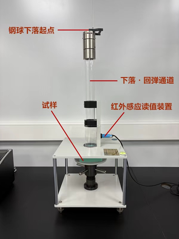 落球法的本質(zhì),是通過鋼球從固定高度下落、反彈的過程,量化泡沫材料吸收并釋放能量的能力。其測量設(shè)備,包含固定內(nèi)徑的下落-回彈通道、標(biāo)準(zhǔn)鋼球、紅外感應(yīng)讀值裝置等核心部件。