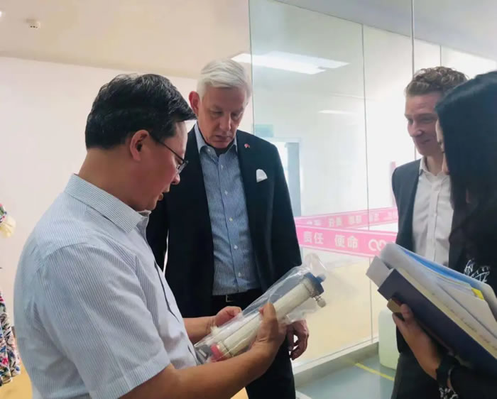 當(dāng)了解到山外山公司新成功研發(fā)的SWS-5000型血液凈化設(shè)備(CRRT+人工肝)在新冠疫情中救治了大批新冠危重患者,鮑達(dá)民大使給予了特別的贊許。