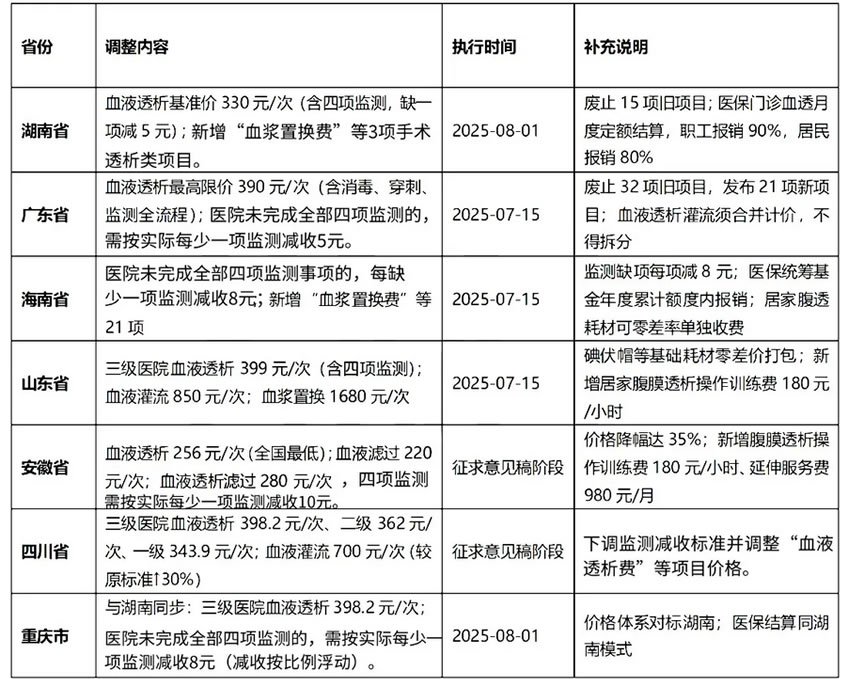 2025年7月,全國透析醫(yī)療服務(wù)價(jià)格改革進(jìn)入密集落地期。