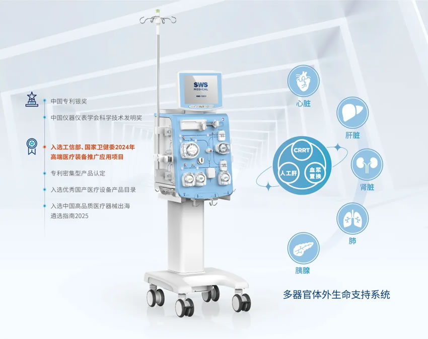 推動國產(chǎn)高端醫(yī)療裝備的創(chuàng)新發(fā)展與臨床應(yīng)用,是實施健康中國戰(zhàn)略、維護國家安全與產(chǎn)業(yè)安全的關(guān)鍵舉措。CRRT技術(shù)作為危重癥救治的核心支撐,本次入選國家高端醫(yī)療裝備推廣應(yīng)用項目的SWS-5000連續(xù)性血液凈化設(shè)備,正是我國血液凈化領(lǐng)域自主創(chuàng)新的重要成果。該項目的成功實施,將實現(xiàn)三大目標:1. 聚焦臨床實際需求,深化產(chǎn)品驗證與優(yōu)化,更好服務(wù)危重癥救治;2. 構(gòu)建完善標準體系,推動診療規(guī)范同質(zhì)化,提升各級醫(yī)療機構(gòu)CRRT技術(shù)應(yīng)用能力;3. 形成可復(fù)制示范效應(yīng),為全國同類項目提供可借鑒經(jīng)驗。