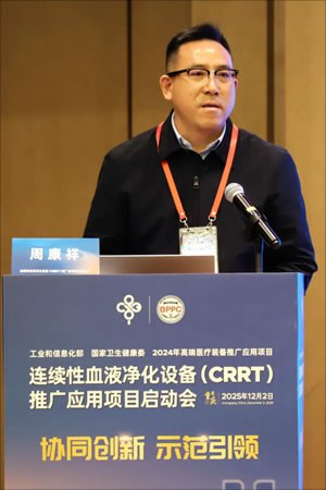 2025年12月2日,由國家工信部、國家衛(wèi)健委聯(lián)合推動的高端醫(yī)療裝備推廣應(yīng)用項目——連續(xù)性血液凈化設(shè)備 (CRRT)推廣應(yīng)用項目啟動會正式舉行。重慶市經(jīng)濟信息委、衛(wèi)生健康委相關(guān)領(lǐng)導(dǎo),中華醫(yī)學(xué)會腎臟病學(xué)分會候任主任委員丁小強教授、中國醫(yī)療器械行業(yè)協(xié)會血液凈化專業(yè)委員會主任委員汪年松教授及全國數(shù)十家知名醫(yī)院的腎臟病學(xué)、重癥醫(yī)學(xué)、急診醫(yī)學(xué)等多學(xué)科專家齊聚現(xiàn)場,共同見證項目啟動,標志我國高端血液凈化裝備推廣應(yīng)用邁上新臺階。